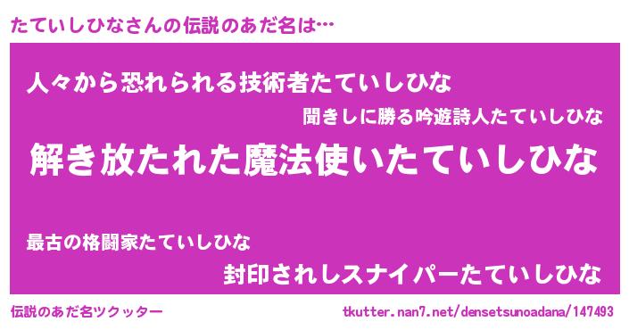 | ポケモン風あだ名 | 『メロタッテ』『ヒタテイシヒナ』 |