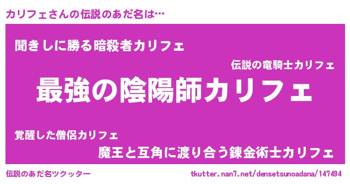| ファンタジー風あだ名 | 『エターナルカリフェー』『クインカット』 |