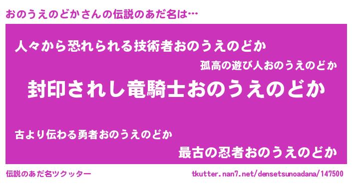 | 胡散臭い通販商品みたいなあだ名 | 『億万長者になれるブレスレット…その名も「おのうえのどか」』 |