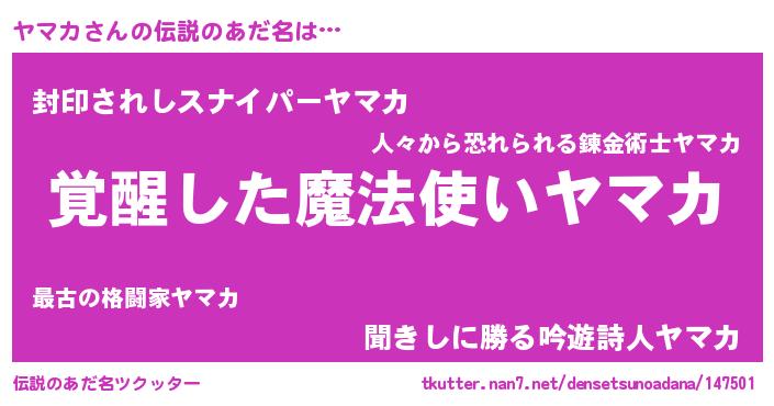 | ヒーロー風カッコイイあだ名 | 『炎刃騎士ヤマ』『スーパーヤマカ』 |