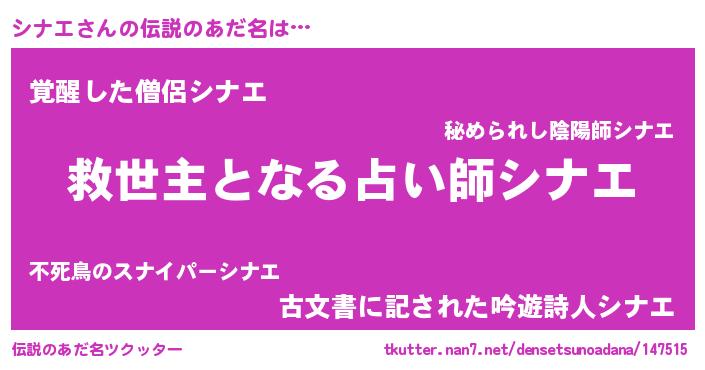 | ヒーロー風カッコイイあだ名 | 『天空の使者シナエ』『最強戦士シナエ』 |