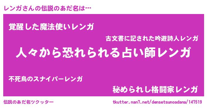 | ヒーロー風カッコイイあだ名 | 『ウルトラ戦士レンガ』『暗黒騎士レン』 |