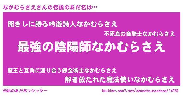 | 意味不明あだ名 | 『自称なかむらさえ』 |