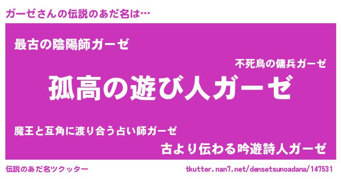 | 意味不明あだ名 | 『自称ガーゼ』『住所不定無職ガーゼ(79歳)』 |