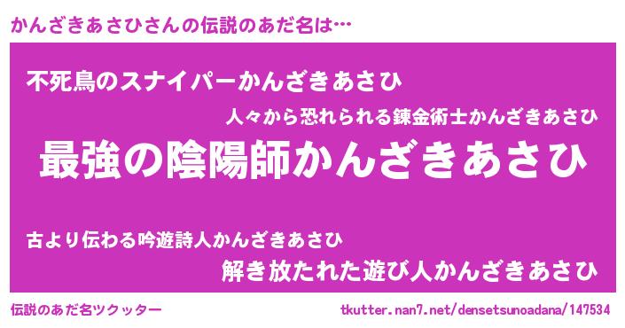 | ファンタジー風あだ名 | 『エターナルカンザキアサヒー』 |