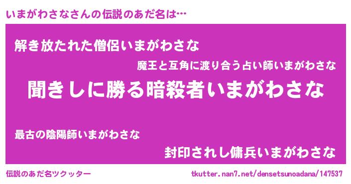 | 意味不明あだ名 | 『住所不定無職いまがわさな(41歳)』 |