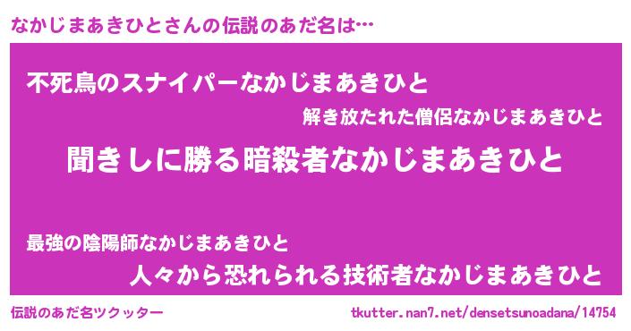 | 意味不明あだ名 | 『永久保存なかじまあきひと』 |