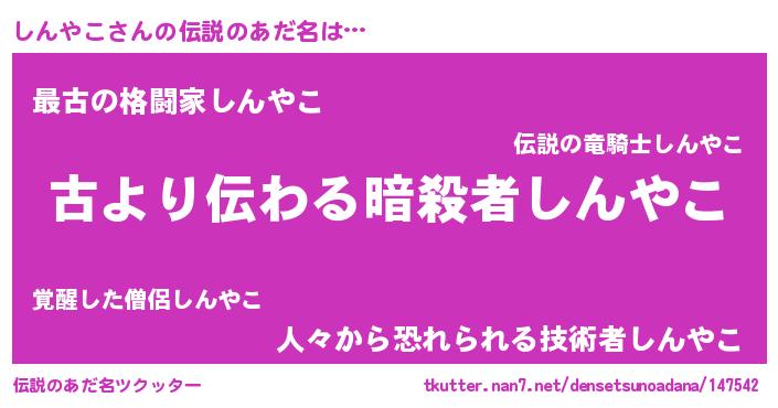 | ヒーロー風カッコイイあだ名 | 『ネオシンヤコ』『ウルトラしんやこマン』 |
