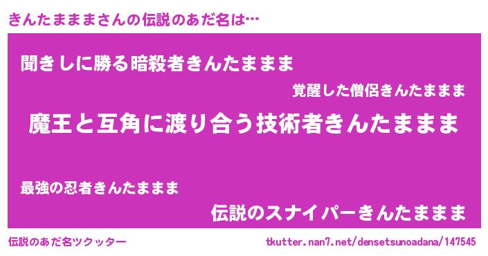 | ヒーロー風カッコイイあだ名 | 『慈愛の使者きんたままま』 |