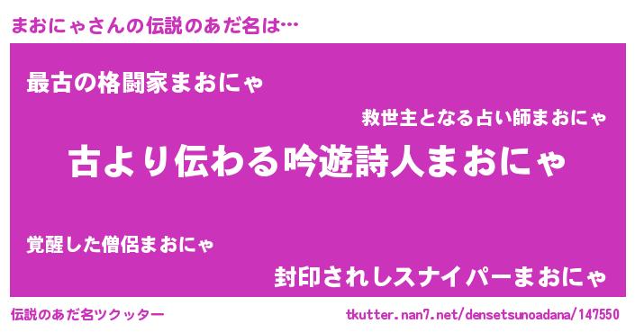 | 意味不明あだ名 | 『永久保存まおにゃ』『ペロリンまおにゃ』 |