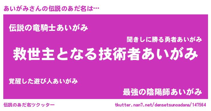 | ヒーロー風カッコイイあだ名 | 『天空の使者あいがみ』『仮面アイダー』 |