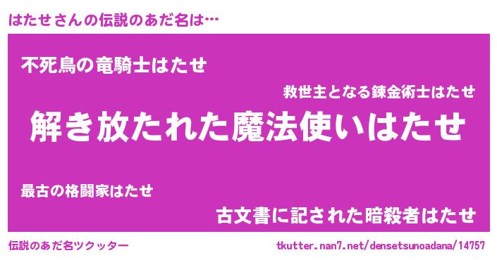 | 女子向けラノベタイトル風あだ名 | 『はたせの卵を拾いまして』『闇のはたせ』 |