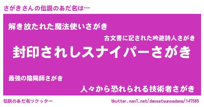 | 意味不明あだ名 | 『ヨモギ科さがき属』『自称さがき』 |