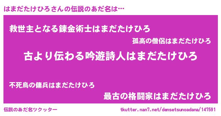 | 意味不明あだ名 | 『住所不定無職はまだたけひろ(10歳)』 |