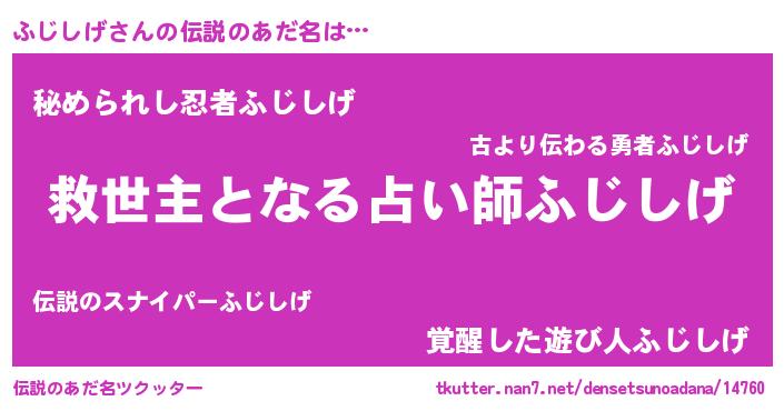 | 女子向けラノベタイトル風あだ名 | 『闇のふじしげ』『死神ふじしげの再婚』 |
