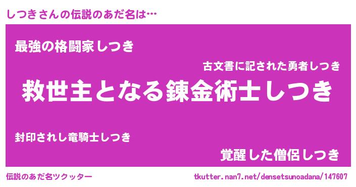 | ヒーロー風カッコイイあだ名 | 『仮面シツダー』『友情の使者しつき』 |