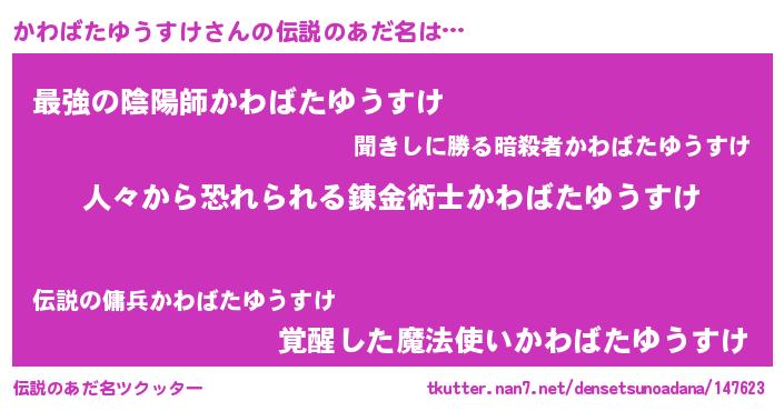 | 意味不明あだ名 | 『住所不定無職かわばたゆうすけ(95歳)』 |