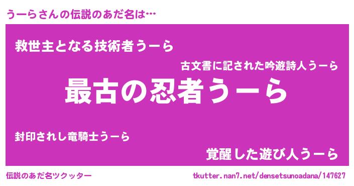 | 胡散臭い通販商品みたいなあだ名 | 『世界中を虜にした限定10本のレアな日本酒…その名も「うーら」』 |