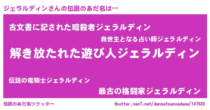 | 男性向けラノベタイトル風あだ名 | 『ジェラルディンの嫁は女の子じゃないと思った?』 |