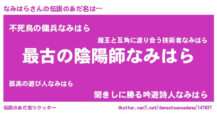 | ファンタジー風あだ名 | 『エターナルナミハラー』『ゼナミトゥ』 |