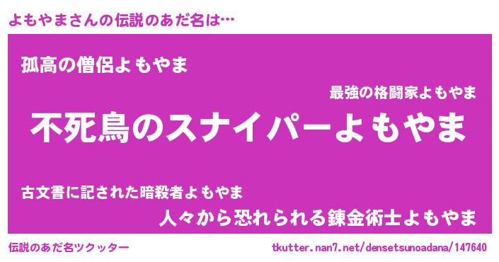 | ヒーロー風カッコイイあだ名 | 『最強戦士ヨモヤマ』『スーパーヨモヤマ』 |