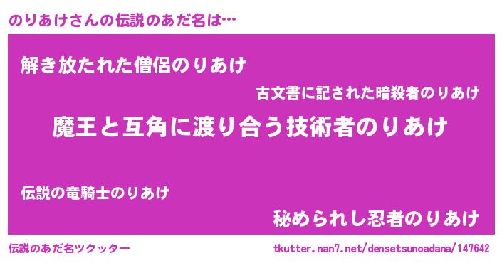 | 女子向けラノベタイトル風あだ名 | 『のりあけ恋絵巻』 |