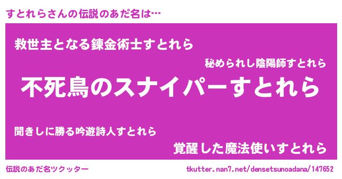 | ヒーロー風カッコイイあだ名 | 『スーパーストレラ』『炎刃騎士スト』 |