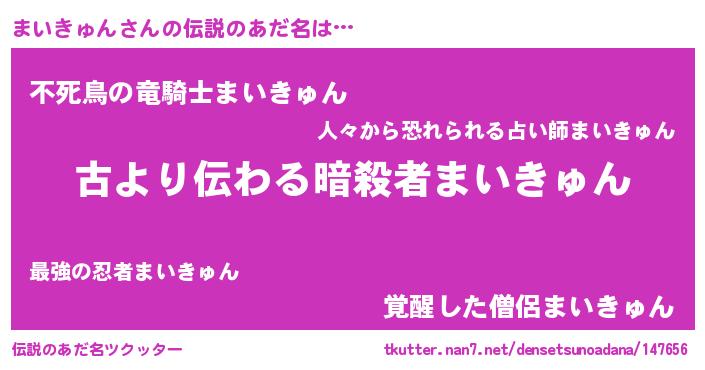 | 胡散臭い通販商品みたいなあだ名 | 『来世でも幸せになれる健康食品…その名も「まいきゅん」』 |