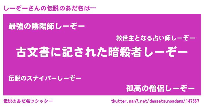 | 意味不明あだ名 | 『住所不定無職しーぞー(65歳)』 |