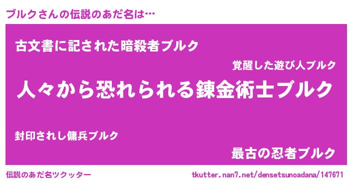 | ポケモン風あだ名 | 『ブルゴンZ』『ブックウザ』 |