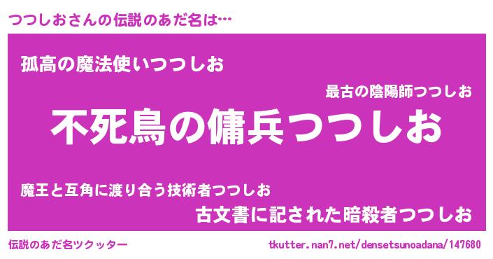 | 男性向けラノベタイトル風あだ名 | 『転生したらつつしおだった件』 |
