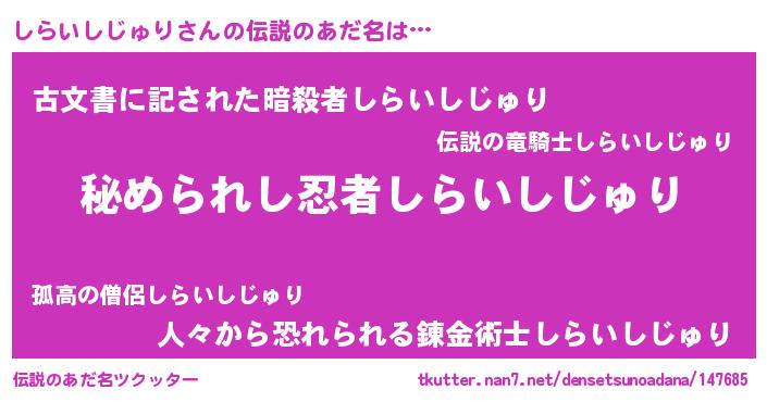 | 意味不明あだ名 | 『しらいしじゅりフォーエバー』 |
