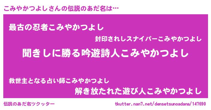 | 男性向けラノベタイトル風あだ名 | 『こみやかつよしという概念が存在しない退屈な世界 』 |