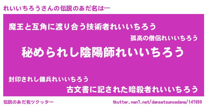 | 男性向けラノベタイトル風あだ名 | 『魔弾の王とれいいちろう』 |
