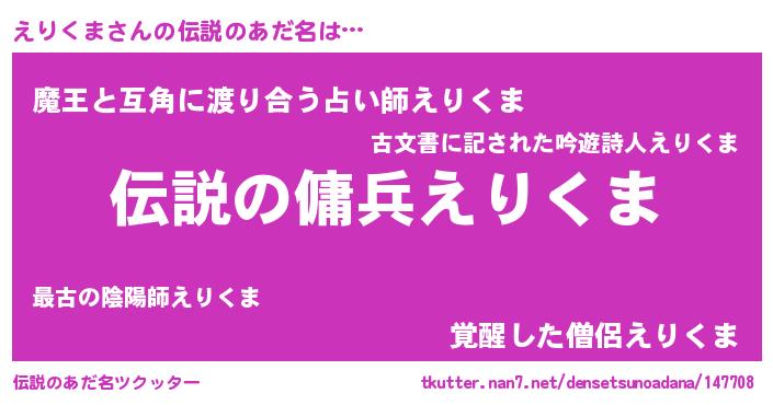 | ヒーロー風カッコイイあだ名 | 『スーパーエリクマ』『愛の使者えりくま』 |