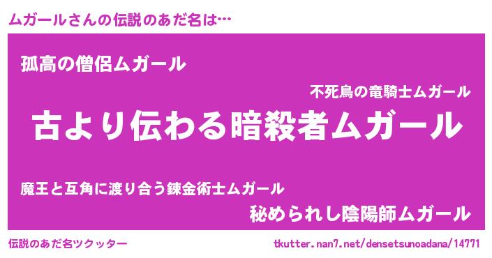 | ヒーロー風カッコイイあだ名 | 『ネオムガール』『幻影騎士ムガ』 |