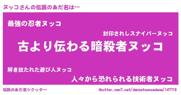 | ヒーロー風カッコイイあだ名 | 『ネオヌッコ』『仮面ヌッダー』 |