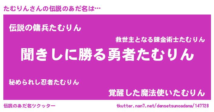 | ヒーロー風カッコイイあだ名 | 『ネオタムリン』『スーパータムリン』 |