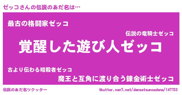 | ファンタジー風あだ名 | 『ファントムゼッス』『ゼゼットゥ』 |