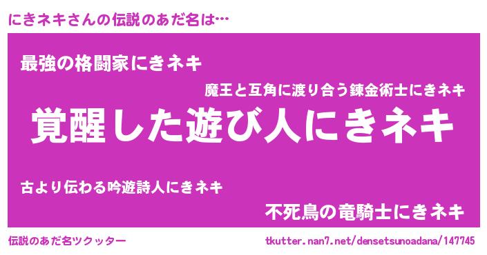 | 意味不明あだ名 | 『ニラ科にきネキ属』『ペロリンにきネキ』 |