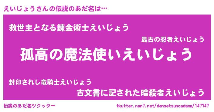 | 胡散臭い通販商品みたいなあだ名 | 『信頼と実績のサプリメント…その名も「えいじょう」』 |