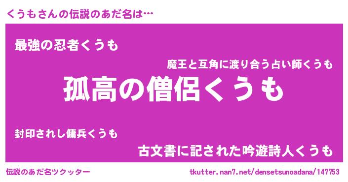 | 意味不明あだ名 | 『とにかく怪しいくうも』 |