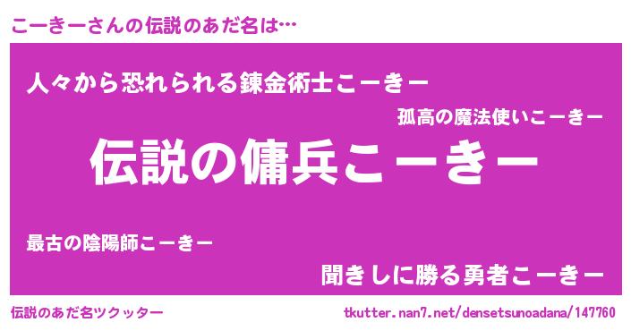 | 意味不明あだ名 | 『ペロリンこーきー』『永久保存こーきー』 |