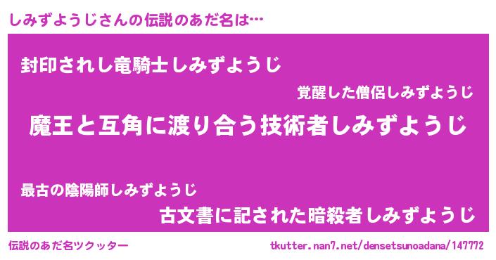 | 意味不明あだ名 | 『住所不定無職しみずようじ(1歳)』 |