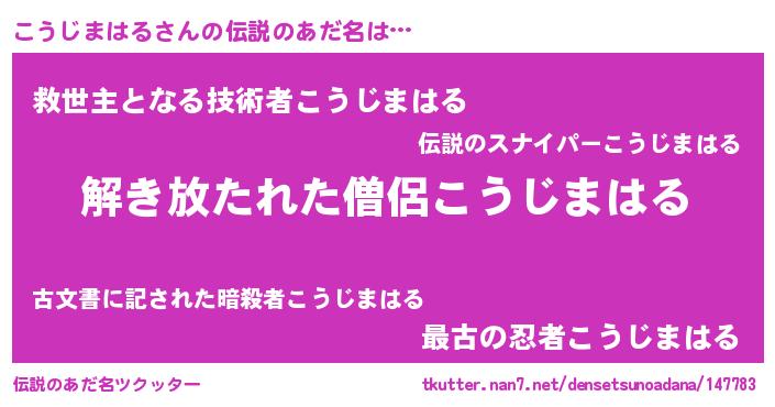 | 意味不明あだ名 | 『とにかく怪しいこうじまはる』 |