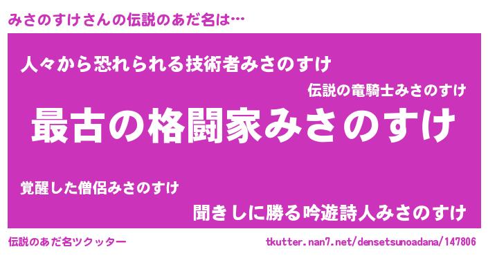 | 男性向けラノベタイトル風あだ名 | 『Re:みさのすけから始める異世界生活』 |