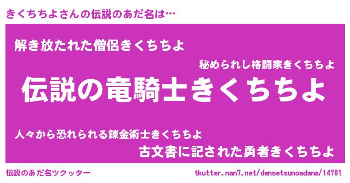 | 意味不明あだ名 | 『ペロリンきくちちよ』『自称きくちちよ』 |