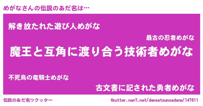 | 女子向けラノベタイトル風あだ名 | 『めがな恋絵巻』『めがな様がみてる』 |