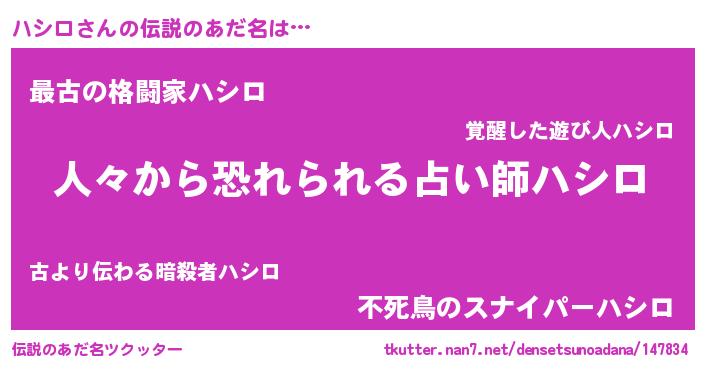 | 女子向けラノベタイトル風あだ名 | 『ハシロなんてお断りですっ。』 |