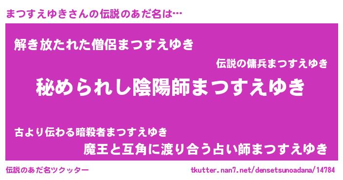 | 男性向けラノベタイトル風あだ名 | 『マツスエユキスレイヤー』 |